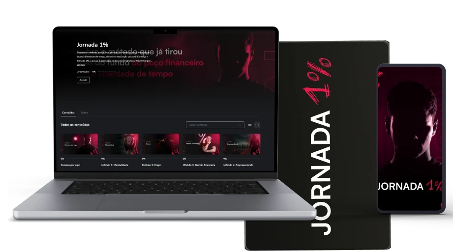 Você não aprende apenas sobre dinheiro. A Jornada 1% vai trabalhar sua mentalidade, saúde, gestão, vendas, empreendedorismo e até questões emocionais que travam seu progresso.